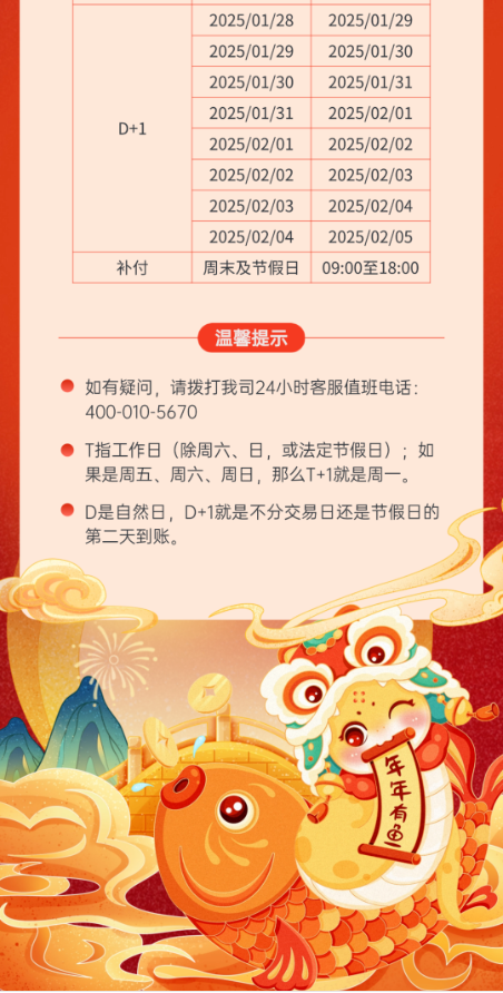 以下是我司2025春节假期期间结算业务运行时间安排: